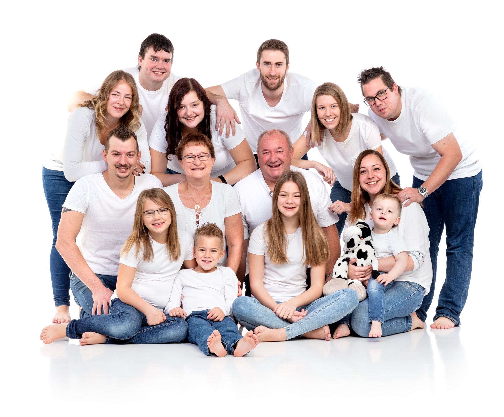 Ook met de volledige familie zijn jullie uiteraard van harte welkom in onze fotostudio. Dit is het perfecte geschenk voor de grootouders: een unieke herinnering van alle kinderen, kleinkinderen en misschien zelfs achterkleinkinderen samen.